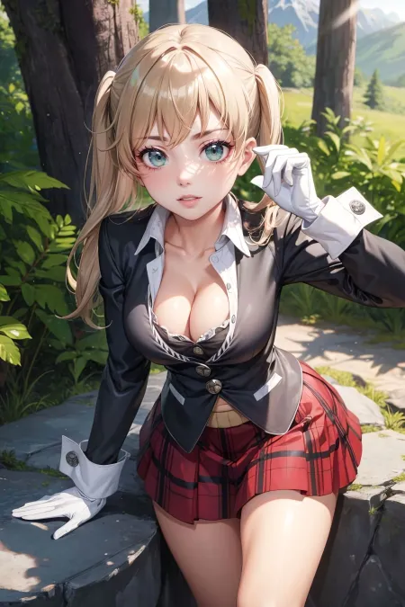 maka_albarn, skirt, necktie, plaid, plaid skirt, school uniform, white gloves