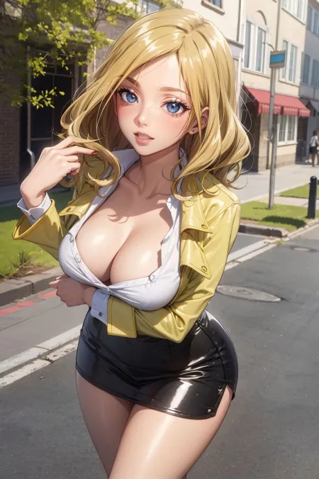 milly_ashford, blonde hair, long hair, yellow school uniform