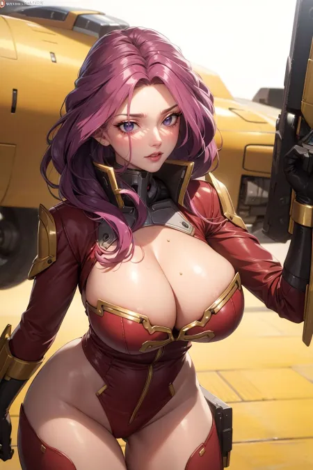 cornelia_li_britannia, purple hair, long hair, lipstick, makeup, bodysuit